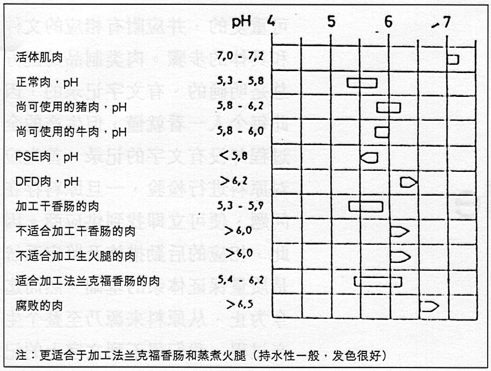 在加工過程中,由于使用添加劑、微生物的活動(如發酵香腸的成熟過程)和加熱,肉的pH值會發生變化,一般會升高。因此成品的pH范圍與原料肉不同。每類肉制品都有其特定的pH范圍,可用來作為判定和控制產品質量的尺度。